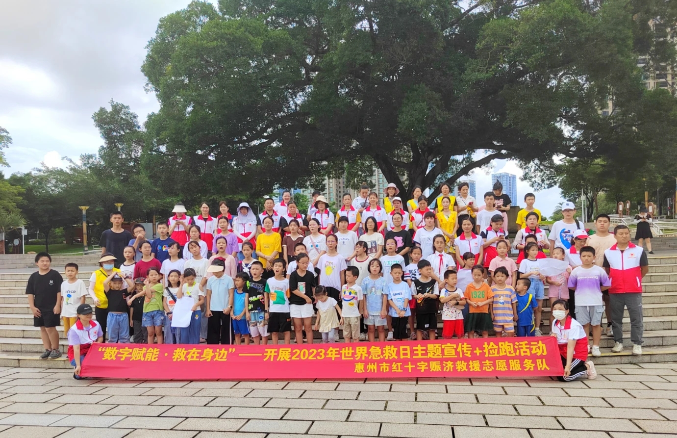 惠州日報訊 (記者馬海菊)8月27日下午,96組親子志愿者相聚惠城區(qū)東江公園廣場,惠州市紅十字賑濟救援志愿服務(wù)隊在此舉辦“應(yīng)急救護+撿跑”暑假志愿活動總結(jié)分享暨2023年“世界急救日”宣傳活動。