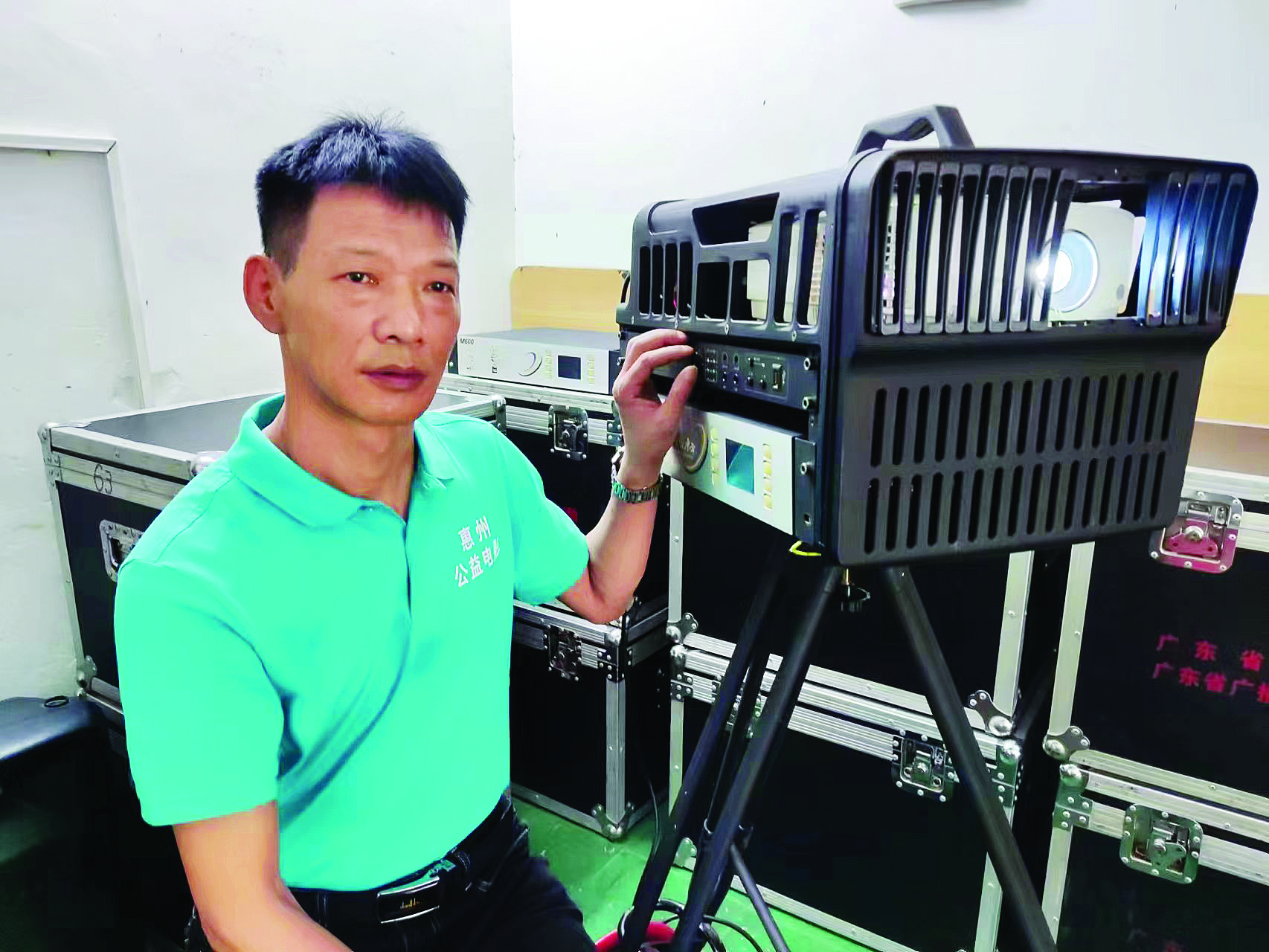 “70后”戴傳旗1998年進(jìn)入惠州市電影公司從事電影放映員工作。2011年,惠州市電影公司、演出公司完成轉(zhuǎn)企改制,組建成立惠州市電影發(fā)行放映有限公司和惠州市公益電影放映服務(wù)中心。戴傳旗轉(zhuǎn)入市電影發(fā)行放映有限公司。