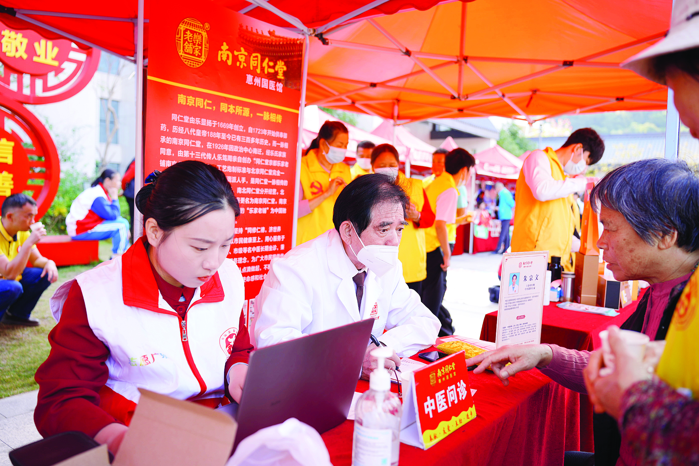 志愿者為市民解答健康疑問。 惠州日?qǐng)?bào)記者周楠 攝