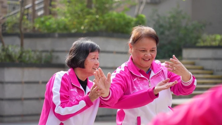 “我們隊員之間、鄰里之間都很和諧,氛圍很好,除了跳舞,大家私底下還會互相分享經(jīng)驗,例如做美食、帶孩子等等,非常開心!绷翁N(yùn)冬說。