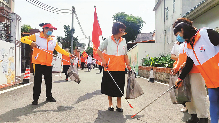 市民在觀背村進(jìn)行公益撿跑;葜萑請(bào)記者盧泓宇 攝