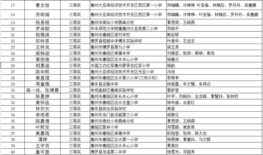 中小學(xué)生演講比賽獲獎(jiǎng)名單
