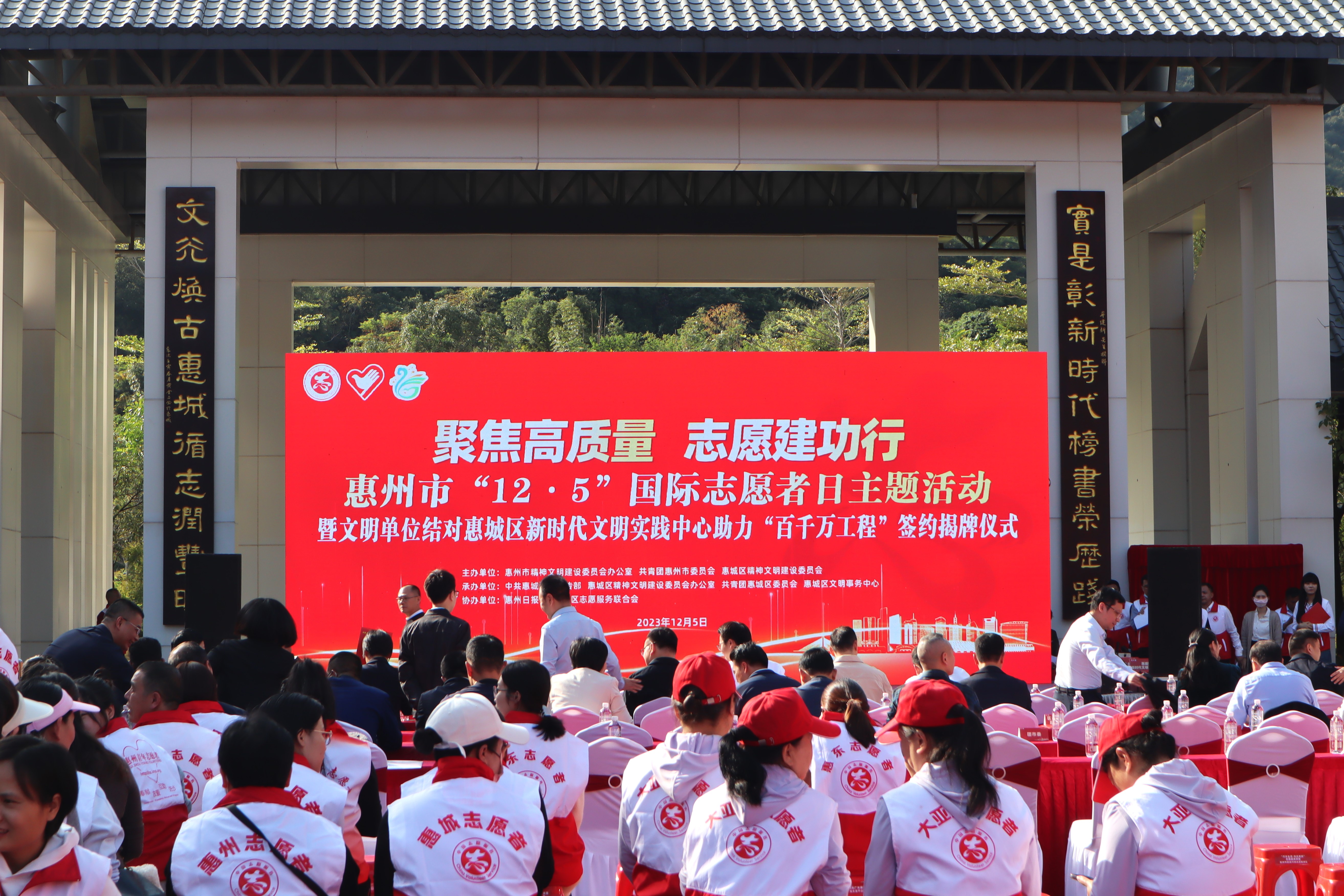 12月5日下午,惠州市“12·5”國際志愿者日主題活動(dòng)暨文明單位結(jié)對(duì)惠城區(qū)新時(shí)代文明實(shí)踐中心助力“百千萬工程”簽約揭牌儀式在惠城區(qū)新時(shí)代文明實(shí)踐中心廣場(chǎng)舉行,F(xiàn)場(chǎng),惠州海關(guān)與惠城區(qū)新時(shí)代文明實(shí)踐中心,以及惠城區(qū)13個(gè)區(qū)直單位與13個(gè)鎮(zhèn)(街道)共同簽訂結(jié)對(duì)共建協(xié)議書。