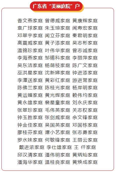 惠州日?qǐng)?bào)訊 (記者馬海菊 通訊員李曉君)近日,省婦聯(lián)、省農(nóng)業(yè)農(nóng)村廳發(fā)布了《關(guān)于認(rèn)定廣東省“美麗庭院”戶、“美麗庭院”典型戶、“美麗庭院”村的通報(bào)》,我市共有60戶家庭被認(rèn)定為省“美麗庭院”戶,3戶家庭被認(rèn)定為省“美麗庭院”典型戶,3個(gè)村(社區(qū))被認(rèn)定為省“美麗庭院”村。