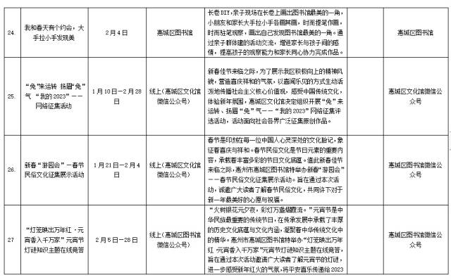 歲末迎新,兔年將至,這個春節(jié)如何度過?日前,春節(jié)期間惠城的景點景區(qū)旅游和鎮(zhèn)街的文化活動正式公布,這份“花式”過年指南收藏起來。