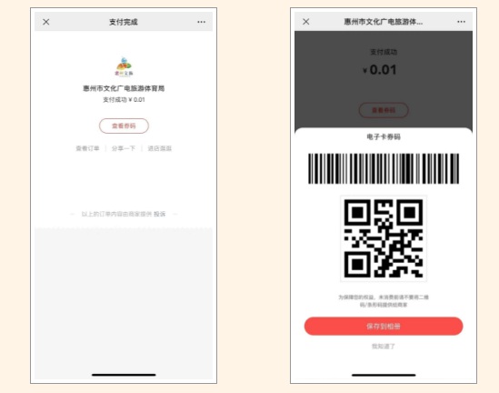 支付完成后,在頁(yè)面內(nèi)點(diǎn)擊“查看券碼”
