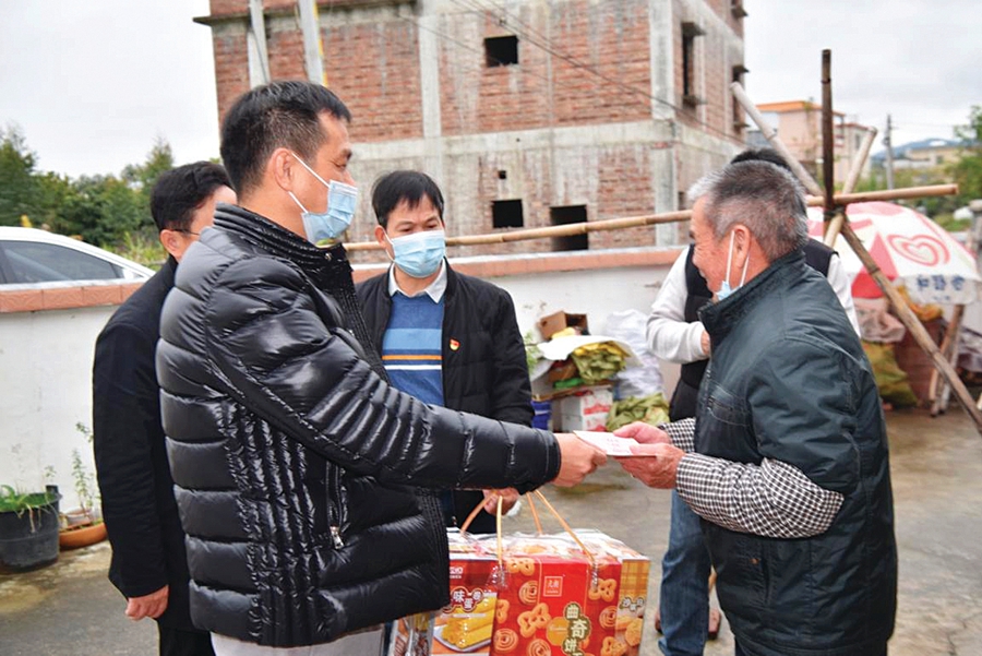 “你不要到處逛噢,現(xiàn)在病毒傳播很快,出門戴好口罩,做好個(gè)人防護(hù)!1月11日上午10時(shí)42分,博羅縣橫河鎮(zhèn)橫河村田寮村民小組八旬老人劉爺爺?shù)募抑杏瓉?lái)了幾位客人,市工商聯(lián)(總商會(huì))副主席、博羅縣園洲嘉和塑膠電子有限公司董事長(zhǎng)劉少輝向他遞上慰問(wèn)金、年貨,關(guān)心地詢問(wèn)他的生活情況。
