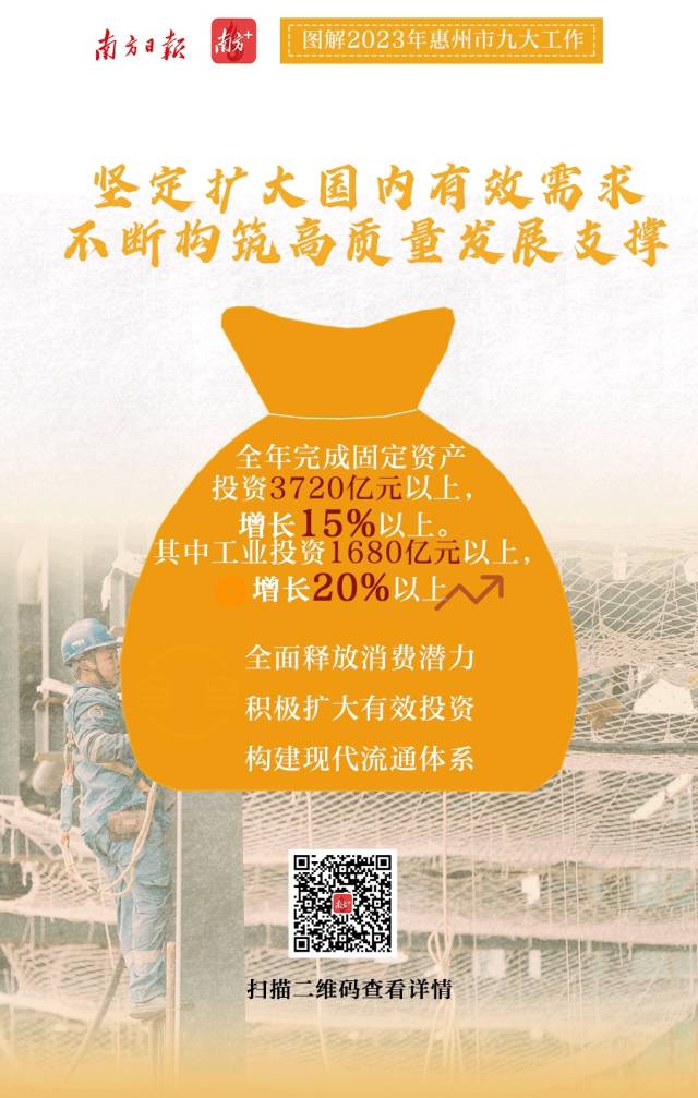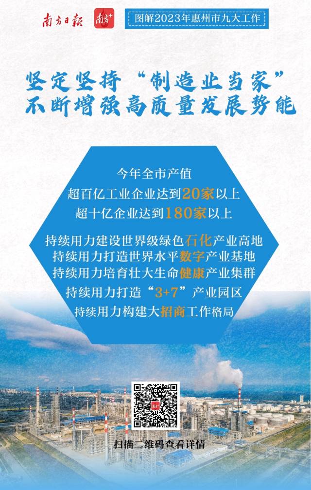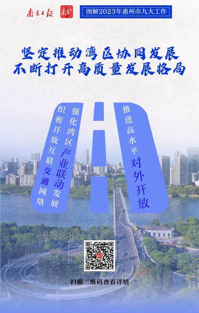 2月7日上午,惠州市第十三屆人民代表大會(huì)第三次會(huì)議開(kāi)幕。會(huì)上,惠州市委副書(shū)記、市長(zhǎng)溫金榮作市政府工作報(bào)告;葜菔姓ぷ鲌(bào)告提出,2023年重點(diǎn)聚焦九個(gè)方面重點(diǎn)工作,南方日?qǐng)?bào)、南方+客戶(hù)端推出9張海報(bào)帶你速覽。