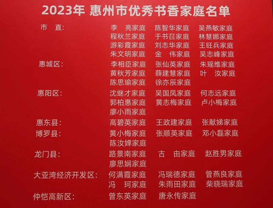 2023年惠州市“優(yōu)秀書香家庭”揭曉;葜萑請笥浾哏姇承 攝