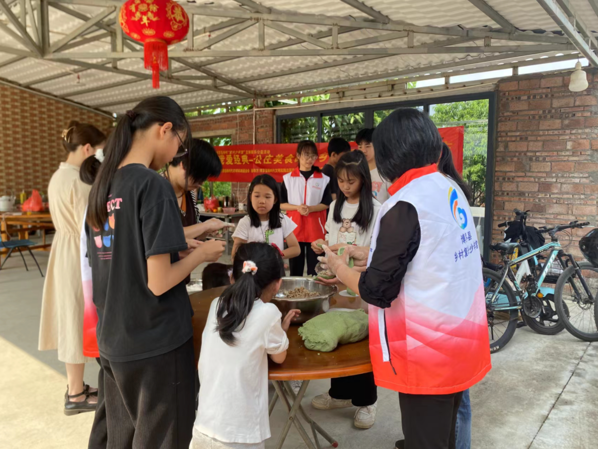 當天,在活動現(xiàn)場,活動負責人向孩子們介紹了艾粄的文化,并告知孩子們在艾粄制作完成后,會將艾粄以探訪的形式送給公莊鎮(zhèn)特殊兒童和青少年。在艾粄制作開始后,孩子們在志愿者們的悉心指導下,大展身手。大家相互配合分工合作:采艾洗艾、燒水煮艾、搗碎、混粉揉團、輕捏成皮、包裹豆餡、下鍋蒸煮。孩子在輕松愉快的氛圍里感受傳統(tǒng)節(jié)日和傳統(tǒng)美食的魅力。