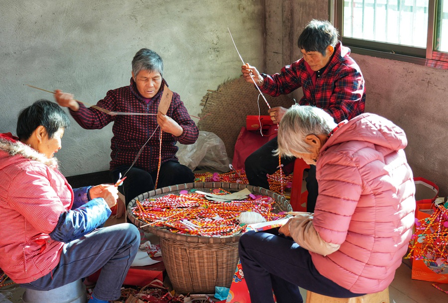 1月30日,農(nóng)歷大年初九,記者來到龍門縣永漢鎮(zhèn)鶴湖村虎頭村民小組,看到當(dāng)?shù)氐拇迕駛個忙忙碌碌,有的制作虎頭花燈,有的將虎頭花燈送到朱莊、大圍、松下嚇等各村小組的祠堂掛起來,準(zhǔn)備在今年元宵節(jié)上燈儀式所用的虎頭花燈。