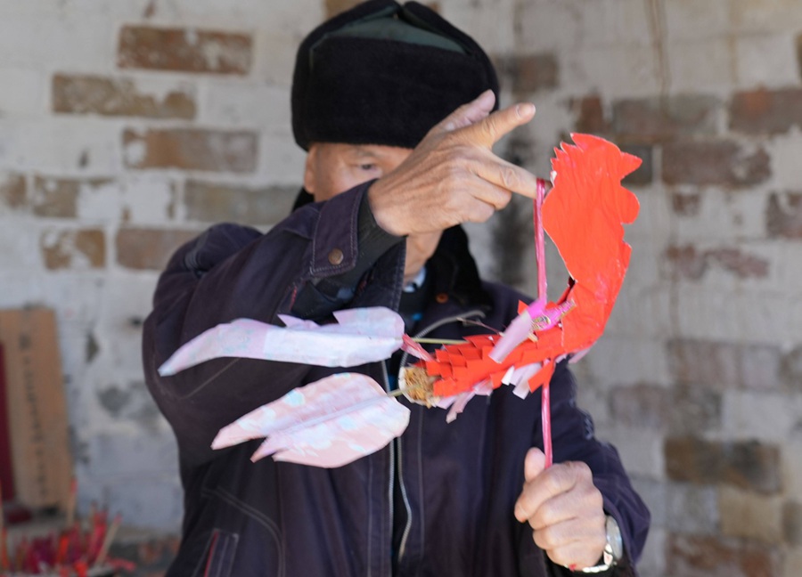何廖福還告訴記者,他七歲開始跟爺爺學(xué)做花燈,虎頭花燈是以竹、紙為主要材料,它的制作過程主要包括扎架、剪紙、卷燈帶、裱糊、做燈斗與鳳雞等一個個組合成以三個大小不一的圓球體為主的虎頭花燈。