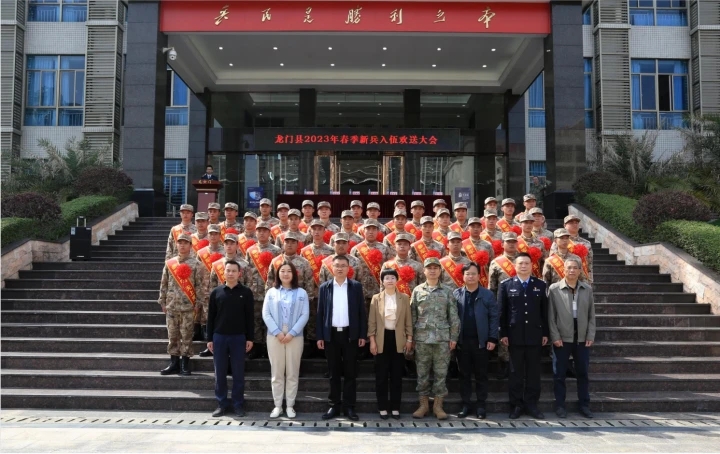 有為青年從軍建功,熱血男兒立志報(bào)國(guó)!3月14日,龍門(mén)縣舉行2023年春季新兵歡送大會(huì),為即將踏上光榮之旅、開(kāi)啟軍營(yíng)生涯的40名新兵送行,為他們送去全縣人民的真情囑托和殷切期望,并向新兵們贈(zèng)送了慰問(wèn)品。龍門(mén)縣征兵工作領(lǐng)導(dǎo)小組副組長(zhǎng)、副縣長(zhǎng)鄔淑嫻,縣征兵工作領(lǐng)導(dǎo)小組副組長(zhǎng)、縣人武部上校部長(zhǎng)許洪根,縣征兵工作領(lǐng)導(dǎo)小組成員單位等相關(guān)部門(mén)負(fù)責(zé)人參加歡送大會(huì)。