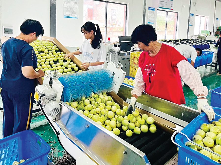 工人們對新鮮采摘的百香果進(jìn)行清洗、分揀、打包;葜萑請笥浾唿S宇翔 通訊員龍融心 攝