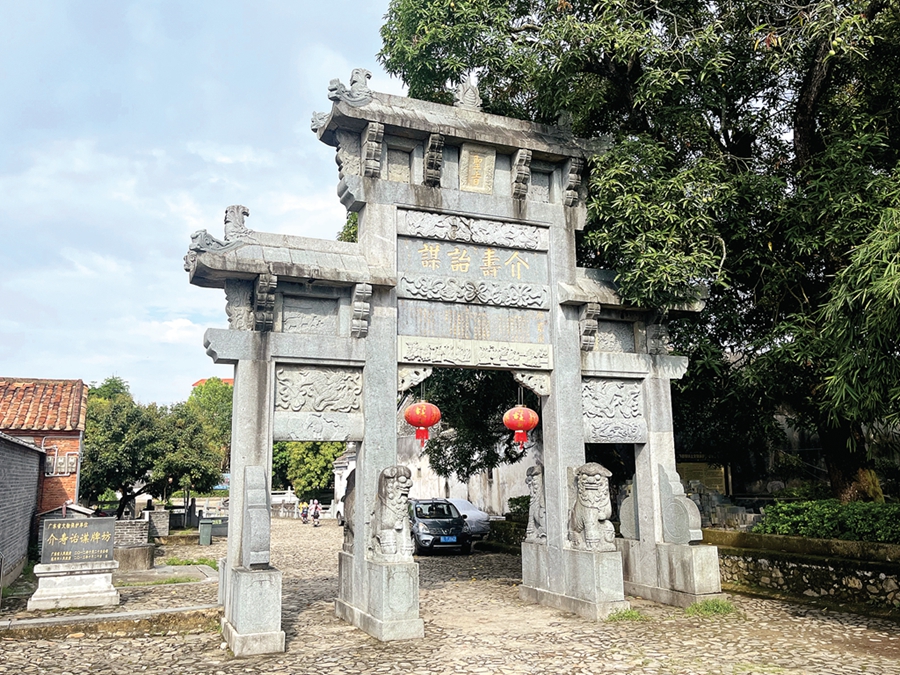 皇思揚(yáng)段是平西古道上遺跡留存最多、修繕意義最大的路段。這是省文保單位“介壽詒謀”石牌坊;葜萑?qǐng)?bào)記者洪鵲兒 通訊員賴悅暉 攝
