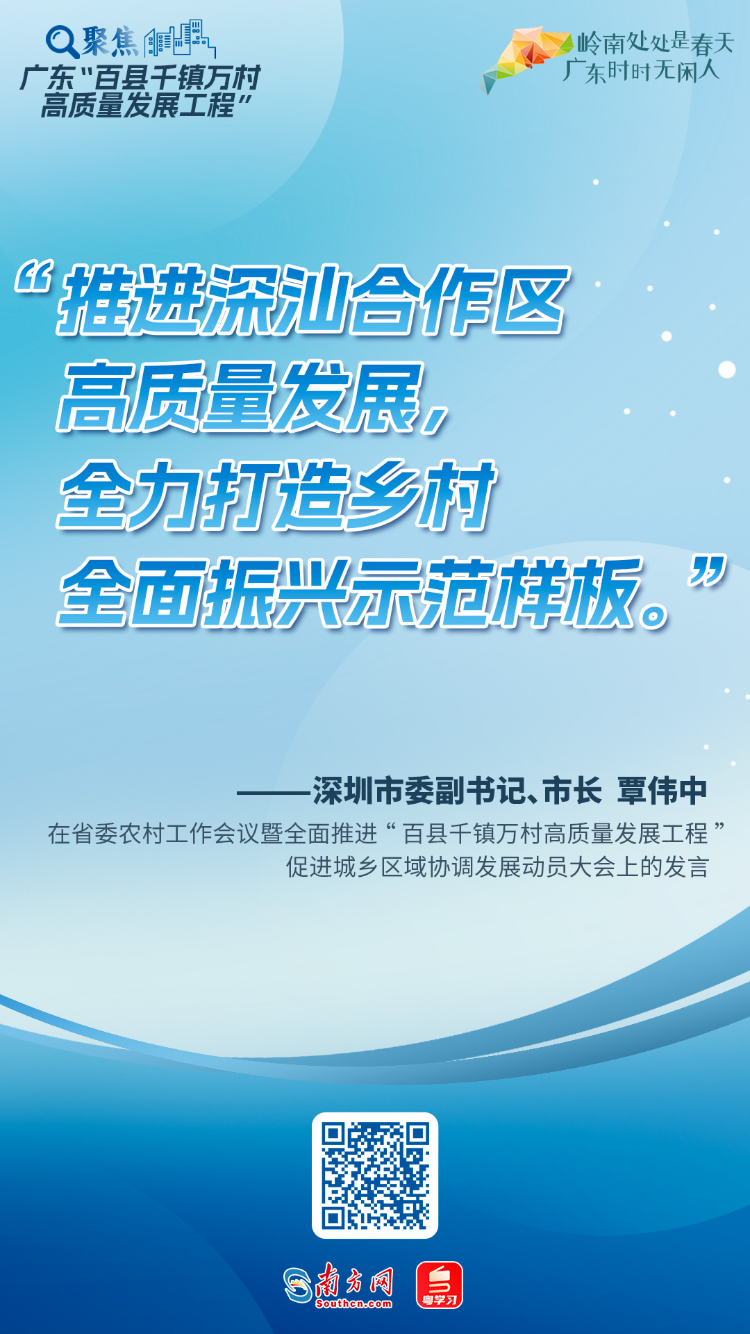 深圳市委副書記、市長(zhǎng)覃偉中表示,深圳以深汕合作區(qū)為主陣地,以省內(nèi)協(xié)作為主渠道,加快打造城鄉(xiāng)區(qū)域協(xié)調(diào)發(fā)展的生動(dòng)范例,努力在推動(dòng)全省實(shí)現(xiàn)高質(zhì)量發(fā)展中先行示范、貢獻(xiàn)力量。