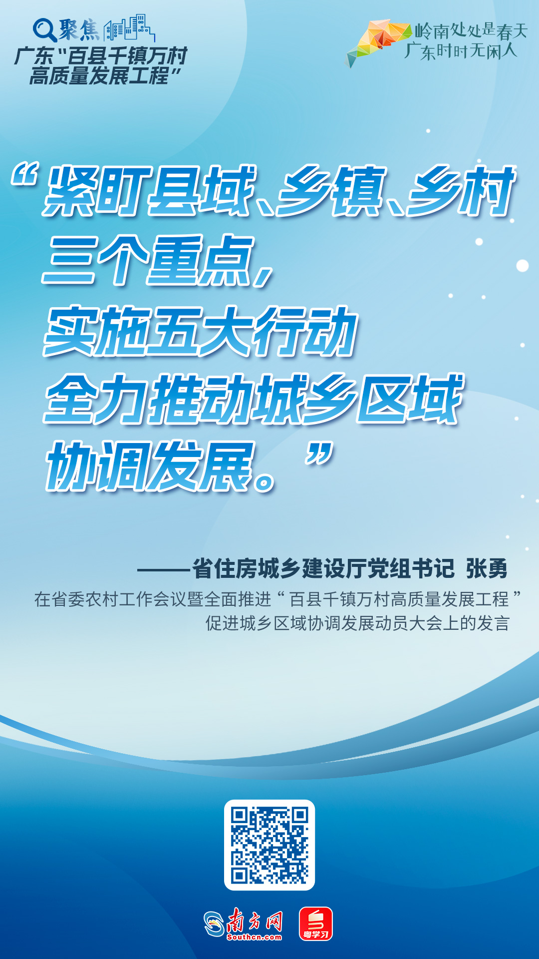 南方網(wǎng)訊 2月13日,廣東召開省委農(nóng)村工作會(huì)議暨全面推進(jìn)“百縣千鎮(zhèn)萬(wàn)村高質(zhì)量發(fā)展工程”促進(jìn)城鄉(xiāng)區(qū)域協(xié)調(diào)發(fā)展動(dòng)員大會(huì)。會(huì)上,多位與會(huì)代表發(fā)言表態(tài),為廣東百縣千鎮(zhèn)萬(wàn)村高質(zhì)量發(fā)展出實(shí)招,助力廣東“三農(nóng)”工作和城鄉(xiāng)區(qū)域協(xié)調(diào)發(fā)展邁上新臺(tái)階。