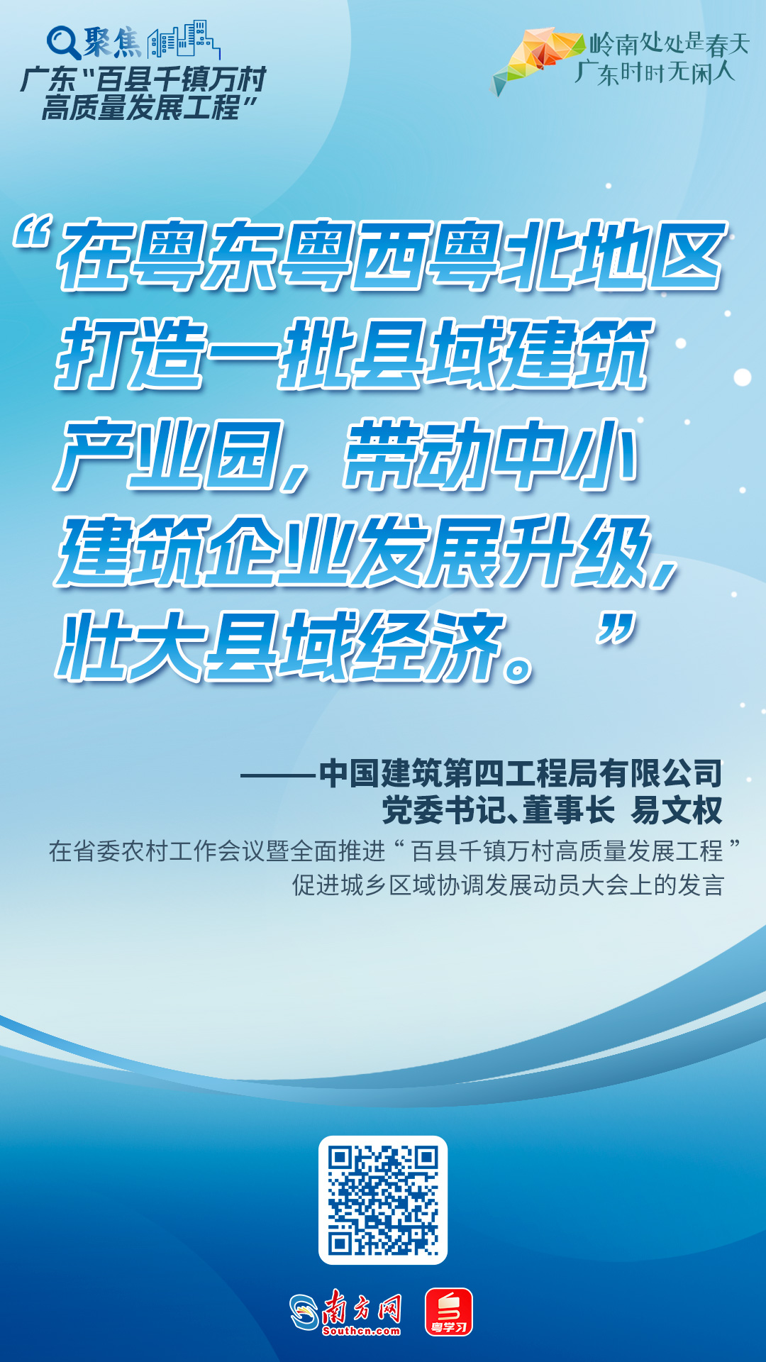 今年,中建四局將投入不少于1億元資金,重點(diǎn)依托粵東粵西粵北地區(qū)重大在建項(xiàng)目,就地就近助力美麗城鎮(zhèn)建設(shè)、農(nóng)房建設(shè)、環(huán)境品質(zhì)提升等行動(dòng),在全省打造一批示范項(xiàng)目,塑造鄉(xiāng)村特色風(fēng)貌。