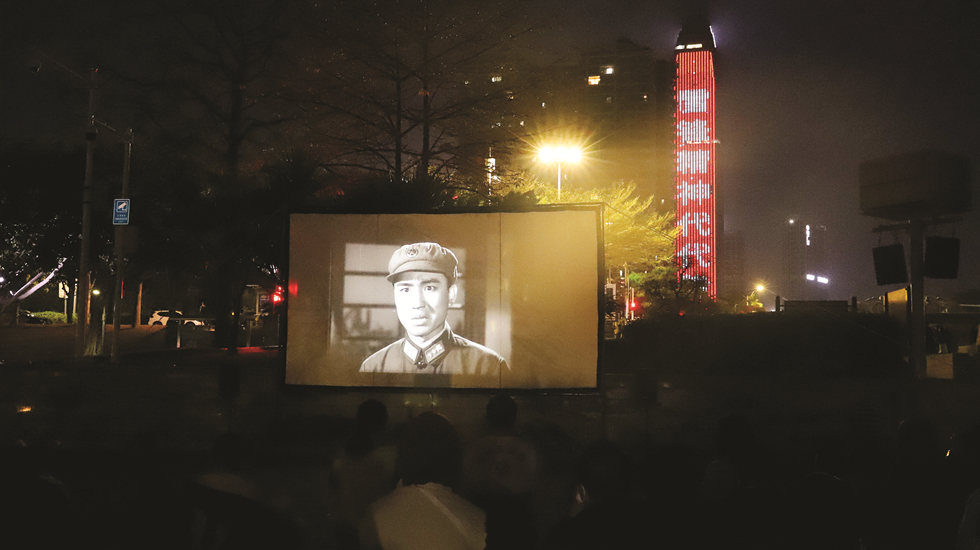 當天晚上,在市區(qū)東江公園,主辦方還舉辦學雷鋒精神紅色電影放映活動,特別選取了1965年拍攝的黑白電影《雷鋒》,并使用5毫米105電影膠片機放映,滿滿的年代感。與此同時,惠州江北CBD坐標建筑榮燦惠州中心外墻LED屏幕上也亮起“雷鋒精神代代傳”“文明心、志愿情,學習雷鋒我先行”等字幕,向雷鋒致敬。