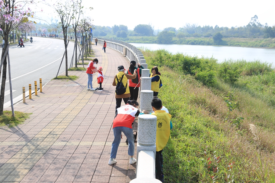 撿跑活動中志愿者們互相配合,干勁十足。 惠州日報記者黃宇翔 特約通訊員黃偉光 攝