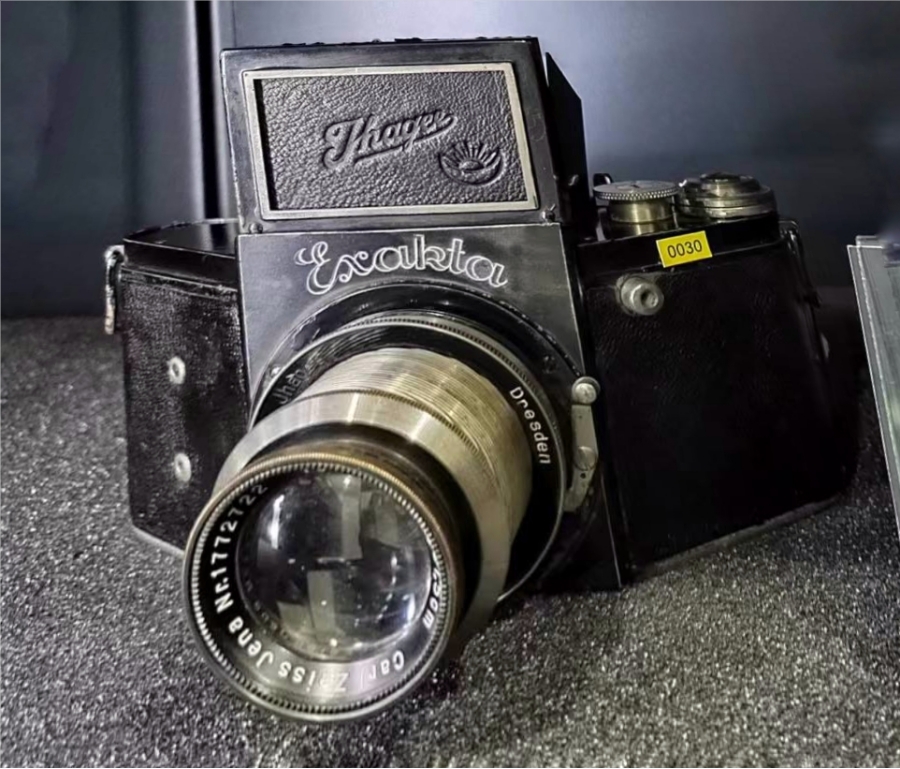 “這臺(tái)Exakta A產(chǎn)自德國(guó),是世界上第一臺(tái)膠卷型單反相機(jī),使用127膠卷,每卷可拍8張。Exakta A是被世界公認(rèn)的‘單反相機(jī)鼻祖’,它的出現(xiàn)標(biāo)志著世界相機(jī)發(fā)展從大型機(jī)進(jìn)入袖珍時(shí)代!