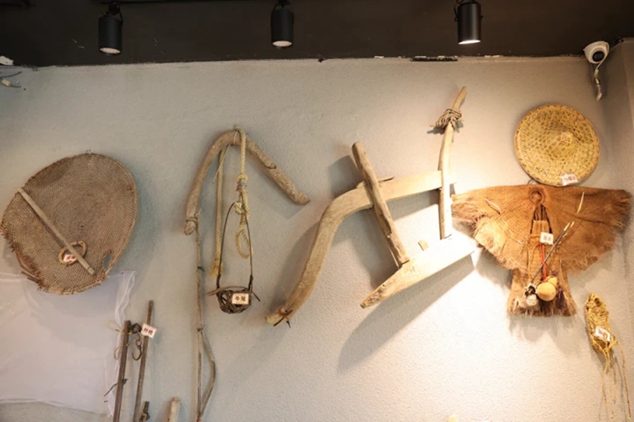 展覽館一樓設(shè)有“文物展覽室”,內(nèi)有展品100多件,有竹籃、犁鏵、稻谷風(fēng)車、斗笠等農(nóng)用用具,也有刮刨、木鉆、角尺、墨斗等工具,更有家具、剪刀、推子等生活用品,展示藍(lán)田瑤族人民的生產(chǎn)生活歷程。這100多件展品,全部征集得來,其中清代展品40余件,異常珍貴。工作人員告訴記者,在展品征集的過程中,當(dāng)?shù)厝罕姸挤e極配合,免費(fèi)將家里的老物件捐獻(xiàn)了出來。