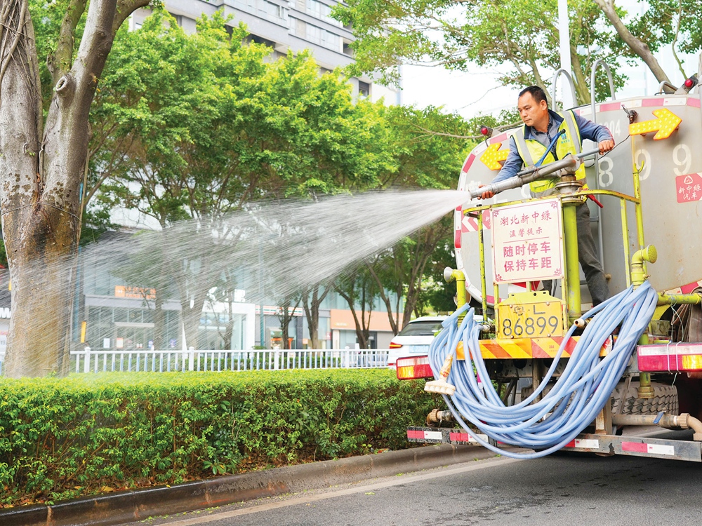 惠州市民公園占地面積9萬平方米,綠化面積2.58萬平方米,是惠州最大的供市民休閑活動的場所。每天清晨7時,來自市城投城市生態(tài)科技有限公司的養(yǎng)護(hù)工何尚件都會穿梭在云山西路,為道路兩旁以及公園內(nèi)的綠植澆水和修剪等。