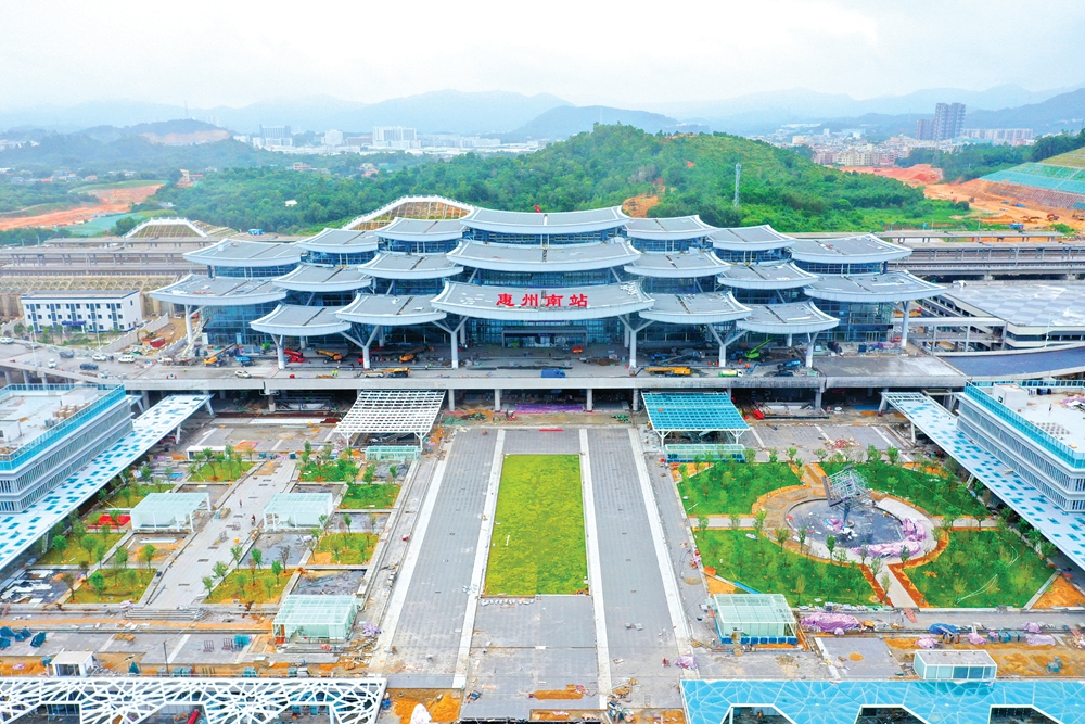 位于惠城區(qū)三棟鎮(zhèn)的廣汕高鐵惠州南站;葜萑請笥浾咝ゃ 羅劍業(yè) 攝