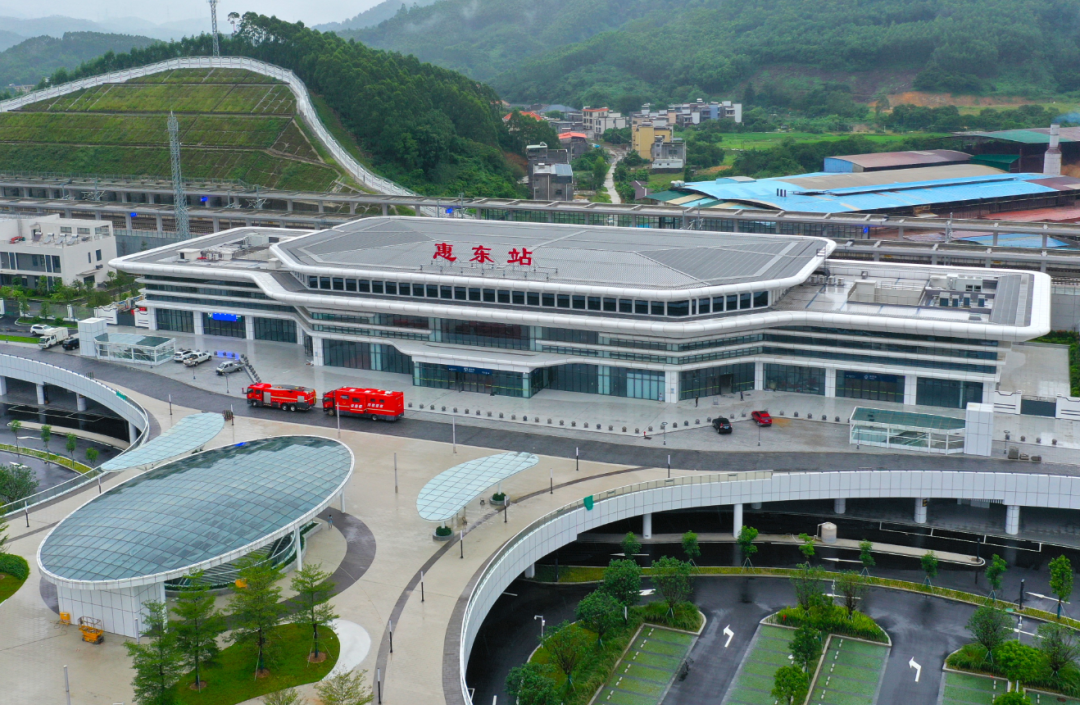 重檐疊瓦、鱗紋蕩漾,頗有嶺南古村落之風韻。當記者一行來到惠城區(qū)三棟鎮(zhèn)的惠州南站,便被大氣恢宏的建筑風格所吸引。該站總建筑面積約3萬平方米,站場規(guī)模2臺6線,是廣汕鐵路沿線新建站點中最大的一個站。