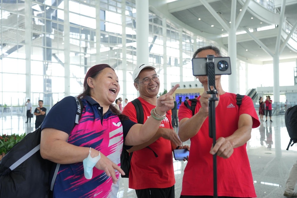 “咔嚓、咔嚓……”上午9時(shí)許,在寫著“熱烈慶祝廣汕高鐵開通運(yùn)營(yíng)”的宣傳板前,4名家住東江學(xué)府的市民一起合影,記錄這個(gè)美好的時(shí)刻!皬脑瓉(lái)的一片空地,到現(xiàn)在建成美麗寬敞的站場(chǎng),一磚一瓦真不容易!66歲的馬來(lái)英說(shuō),作為“鄰居”,她看著惠州南站一點(diǎn)一點(diǎn)建起來(lái),雖然她和朋友們沒(méi)有搶到廣汕高鐵第一趟列車的票,但大家仍然懷著激動(dòng)而自豪的心情到此“打卡”,見(jiàn)證這一歷史時(shí)刻!拔覀兿M茉趪(guó)慶假期買到車票,結(jié)伴坐高鐵去廣州、潮州、廈門等地旅游!”
