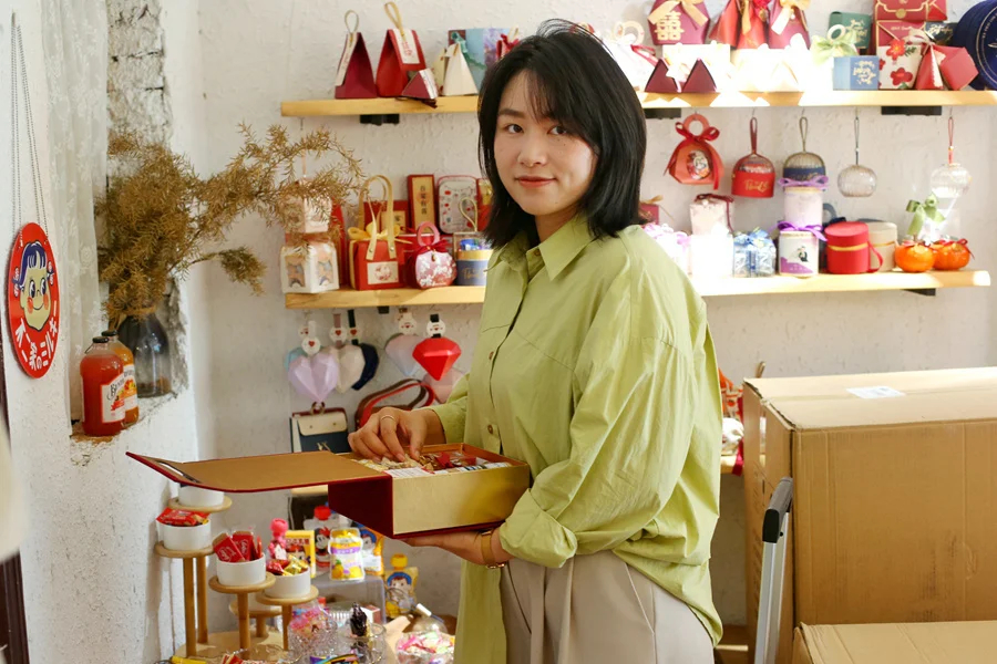 疫情三年給婚宴市場(chǎng)帶來(lái)影響,伴手禮生意也受影響,訂單常常遭取消。“去年12月,20個(gè)訂單全停了,我只好把糖果分給親朋好友了!苯衲昊檠缡袌(chǎng)復(fù)蘇,訂單也逐漸增加,黃琴琴承接的線下訂單多起來(lái)。