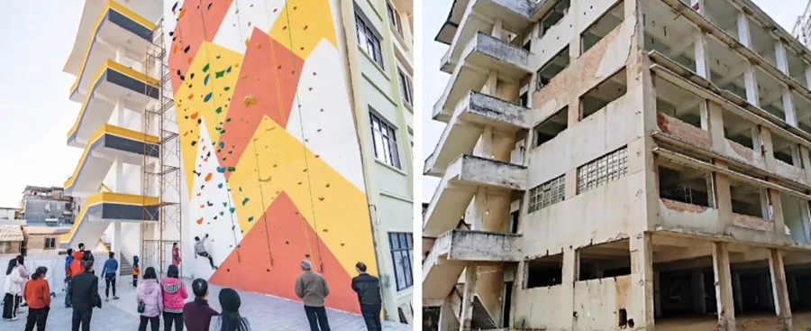 改造前的制衣廠與改造后的33號青年公路街區(qū)。(圖片來源33號青年公路街區(qū))