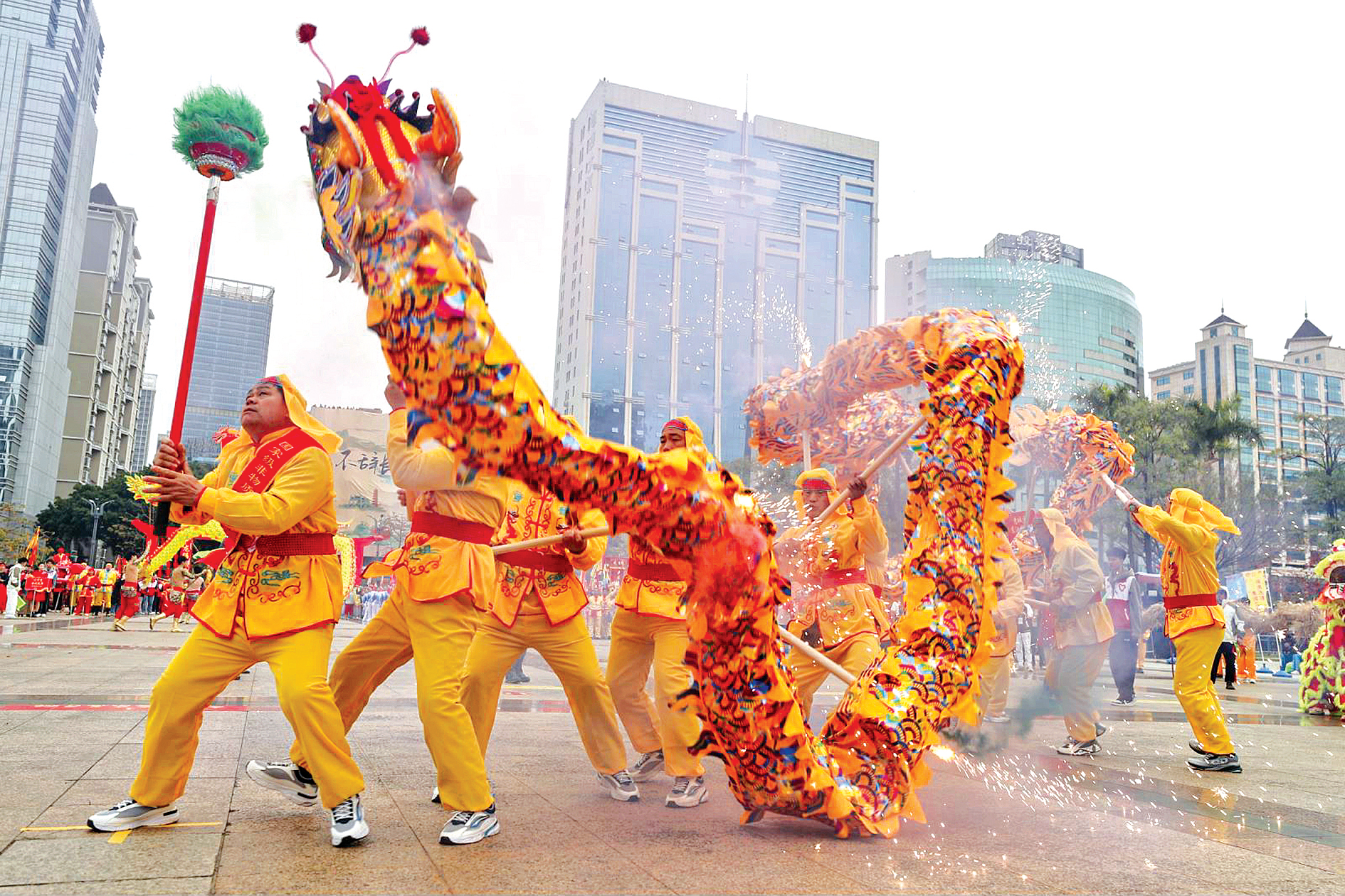 2024年春節(jié)期間,為營造歡樂祥和的節(jié)日氛圍,文化和旅游部非物質(zhì)文化遺產(chǎn)司發(fā)動各地廣泛開展“舞動中國龍”——龍舞大巡游活動。該活動是文化和旅游部“歡歡喜喜過大年”2024年春節(jié)主題活動重要內(nèi)容之一。據(jù)初步統(tǒng)計,各地共舉辦龍舞類非遺項(xiàng)目傳承實(shí)踐活動近300場!拔鑴又袊垺薄埼璐笱灿位顒尤珖鲿䦂鲈O(shè)在廣東惠州,主會場活動包括“舞動中國龍”——龍舞大巡游和“多彩非遺鬧元宵”展演。