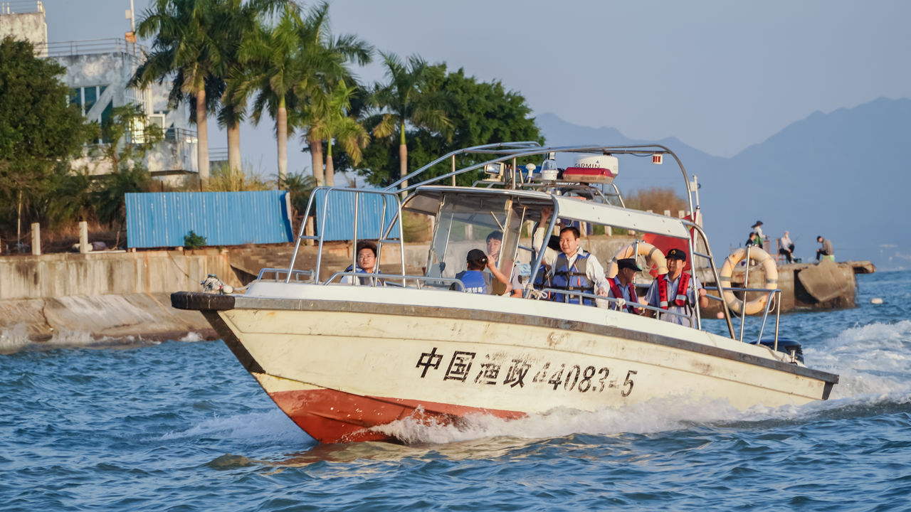執(zhí)法船沿海岸線及附近島嶼巡查宣傳禁毒。