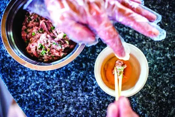 惠州的釀春,是春天里的一道佳肴。所謂釀春,就是把肉餡細(xì)心地塞進(jìn)雞蛋或者鴨蛋黃里,再用春天清香微苦的枸杞梗煮湯,把釀好的“春”放進(jìn)去,慢慢烹煮,養(yǎng)熟成一道菜肴。