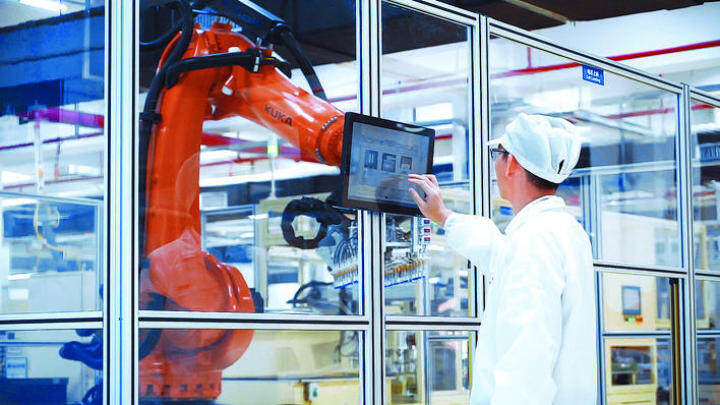億緯鋰能數(shù)字化生產(chǎn)線。