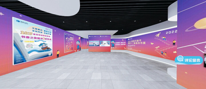 2022年南國(guó)書香節(jié)暨第十二屆惠州書展“惠州全民閱讀平臺(tái)”VR虛擬網(wǎng)上展館正式上線,進(jìn)入VR展館可以360度“云上”逛書展(網(wǎng)絡(luò)截圖)。