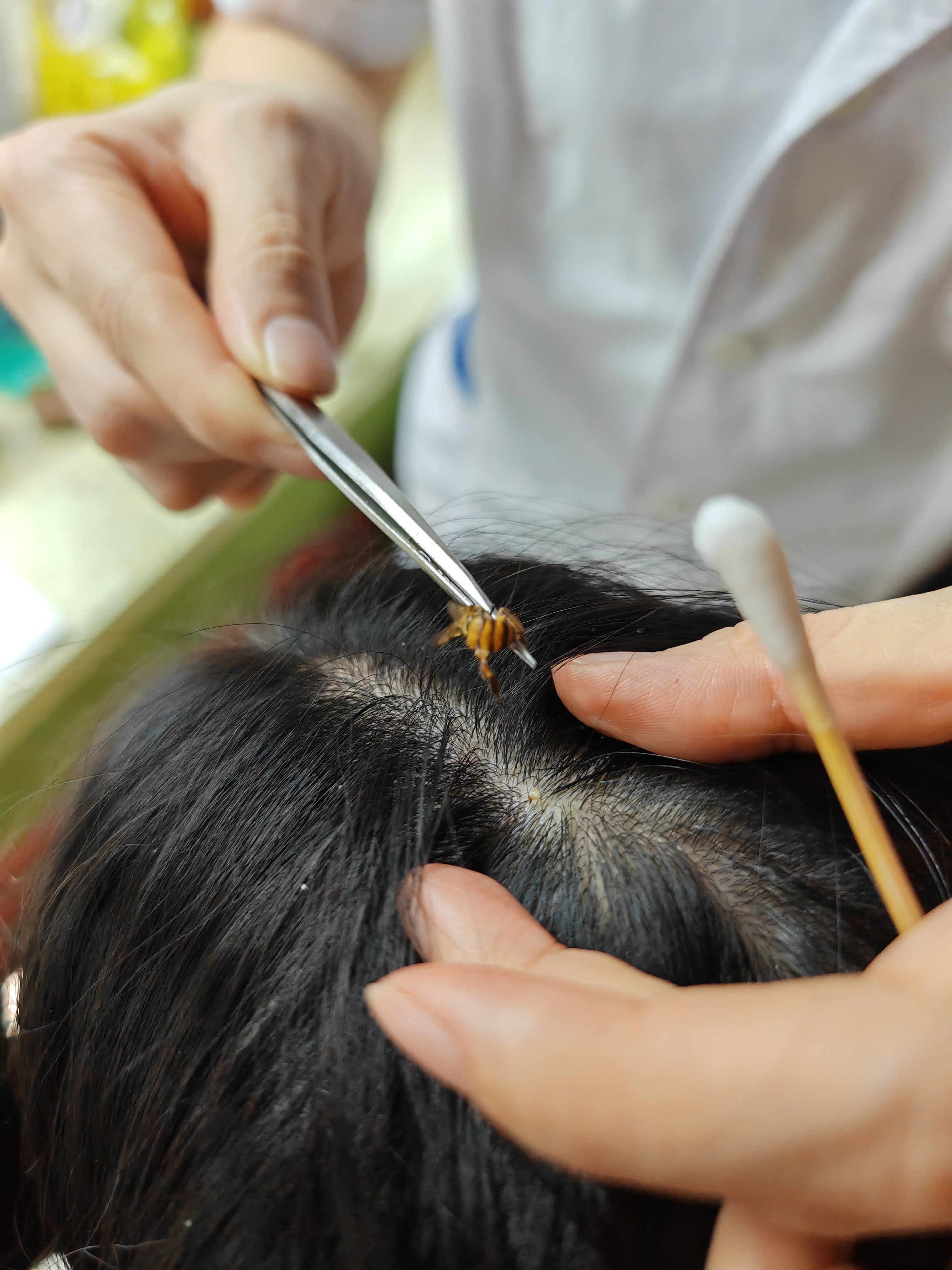 市民在健康夜市上體驗(yàn)自然蜂療。惠州日?qǐng)?bào)記者周智聰 攝
