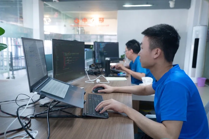 走進(jìn)立冠科技,程序員忙著寫各種代碼,給系統(tǒng)升級(jí)迭代,硬件設(shè)計(jì)師正在設(shè)計(jì)最新的智能吊掛系統(tǒng)零部件圖紙,研發(fā)部門正在調(diào)試最新的產(chǎn)線平板顯示器設(shè)備,一派繁忙景象,整個(gè)公司一半以上都是研發(fā)技術(shù)工程師。