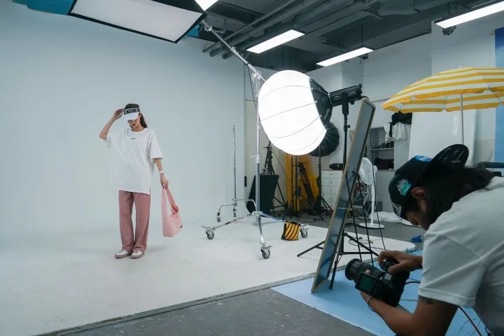 旭日集團(tuán)電貿(mào)攝影工作室,工作人員正在拍攝產(chǎn)品。