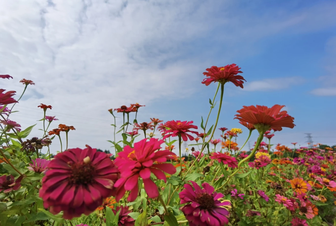 在機(jī)耕路兩旁,各色花兒綻放,迎風(fēng)搖曳,不時(shí)還有蜜蜂和蝴蝶在花兒周圍追逐,為這幅美麗的自然畫卷增添了絲絲靈氣。