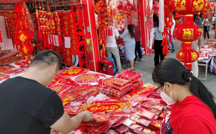 除夕前的最后一個(gè)周末迎春花市人氣旺,市民結(jié)伴逛街置辦年貨