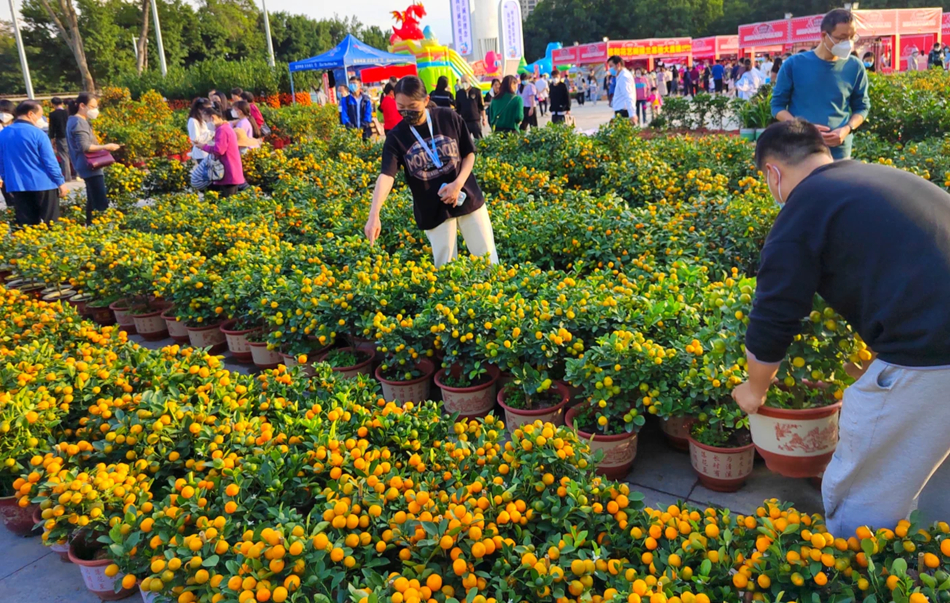 1月14日下午,天氣放晴,溫暖如春,花市熱鬧起來了:鮮花競相怒放、姹紫嫣紅,市民聞香而來,精心挑選。這是除夕前的最后一個(gè)周末,年味越來越濃,大家忙著置辦年貨,當(dāng)然少不了年桔和鮮花,為新年增添一抹靚麗的“春色”。
