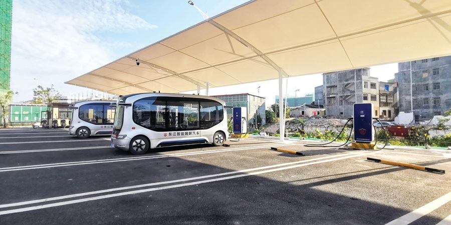 中韓(惠州)產(chǎn)業(yè)園起步區(qū)無(wú)人駕駛公交車(chē);葜萑?qǐng)?bào)記者李松權(quán) 劉煒煒 攝
