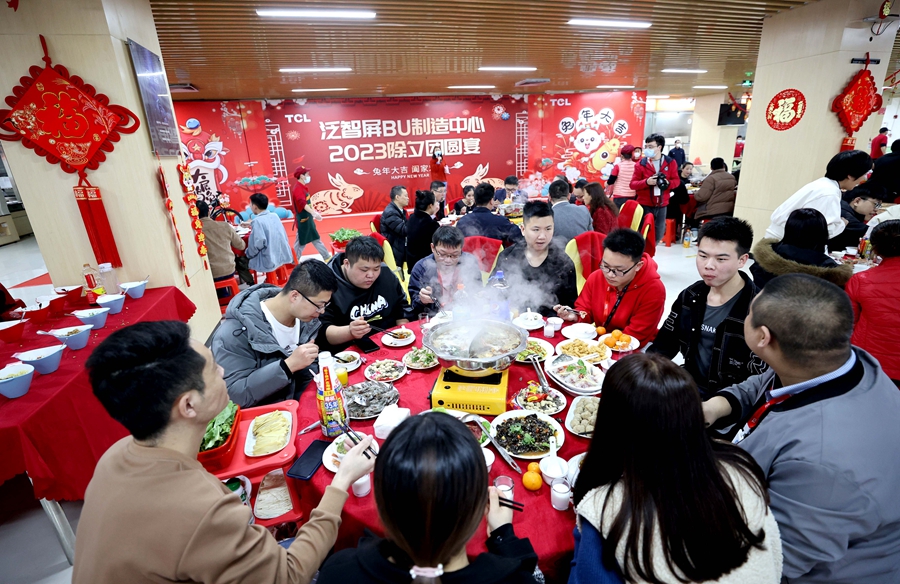 惠州TCL液晶產(chǎn)業(yè)園有5000多位員工,請留守員工代表吃年夜飯是園區(qū)2009年建成以來的“保留節(jié)目”。隨著疫情防控政策調(diào)整,消費活力正快速復(fù)蘇,TCL王牌電器(惠州)有限公司今年一季度訂單量增大,園區(qū)今年有1500多位員工留守,春節(jié)期間1000多位員工將加班生產(chǎn)。