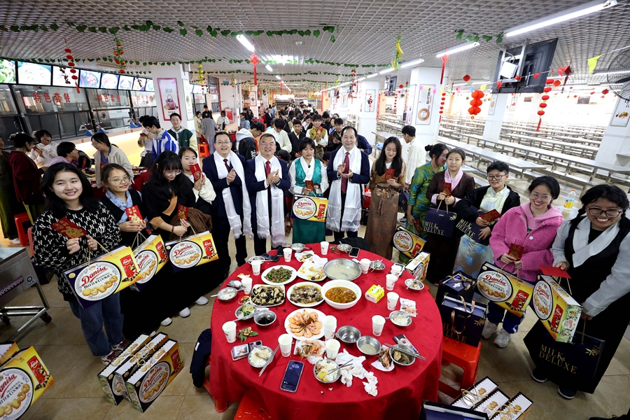 今年春節(jié),市華羅庚中學(xué)西藏部有130多位學(xué)生留在惠州過年。除夕中午,學(xué)校食堂特別熱鬧,校領(lǐng)導(dǎo)、老師和藏班生一起吃團(tuán)年飯,給他們發(fā)春節(jié)利是、禮物,不少老師特意趕到學(xué)校,邀請藏族學(xué)生到家里吃年夜飯,一起歡度春節(jié)。大年初一,學(xué)校老師們還會到學(xué)校給西藏部學(xué)生拜年,一起品嘗客家和藏族的年貨。