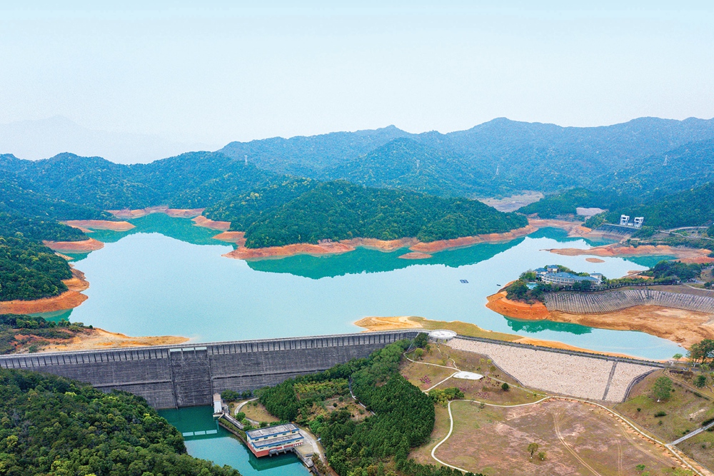 惠州抽水蓄能電站壩長(zhǎng)156米,最大壩高56米。 惠州日?qǐng)?bào)記者湯渝杭 攝