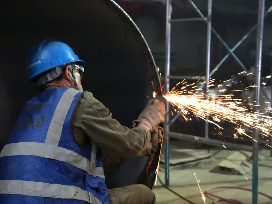 惠州LNG接收站項(xiàng)目3號(hào)儲(chǔ)罐升頂(資料圖)。