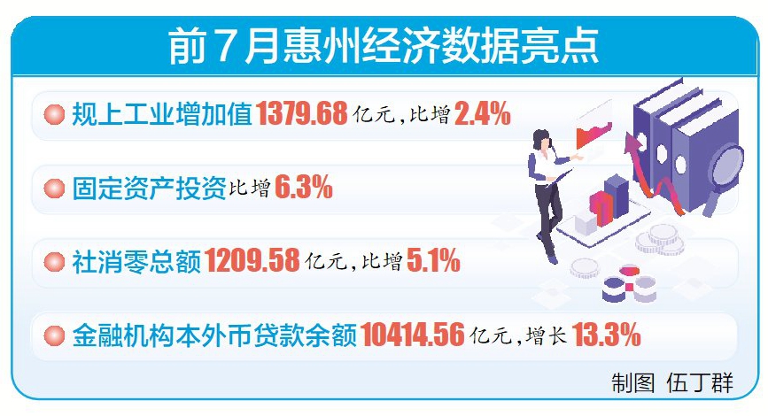面對(duì)復(fù)雜嚴(yán)峻的外部環(huán)境,“萬(wàn)億工業(yè)大市”惠州深入實(shí)施制造業(yè)當(dāng)家戰(zhàn)略,穩(wěn)中求進(jìn),今年1~7月,規(guī)上工業(yè)增加值1379.68億元,同比增長(zhǎng)2.4%;固定資產(chǎn)投資同比增長(zhǎng)6.3%;社消零總額1209.58億元,同比增長(zhǎng)5.1%;金融機(jī)構(gòu)本外幣貸款余額10414.56億元,增長(zhǎng)13.3%;葜萑薪(jīng)濟(jì)運(yùn)行整體回升向好,尤其是工業(yè)經(jīng)濟(jì),穩(wěn)住了增長(zhǎng)態(tài)勢(shì),提升了質(zhì)量,展現(xiàn)出強(qiáng)大的韌性和活力。