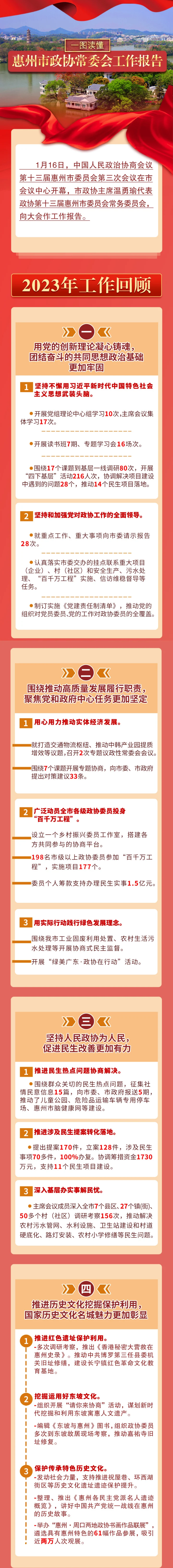 1月16日上午,中國(guó)人民政治協(xié)商會(huì)議第十三屆惠州市委員會(huì)第三次會(huì)議在市會(huì)議中心開幕。市政協(xié)主席溫勇瑜代表政協(xié)第十三屆惠州市委員會(huì)常務(wù)委員會(huì)向大會(huì)作工作報(bào)告。本次報(bào)告都有哪些亮點(diǎn)?現(xiàn)在帶你一圖讀懂!
